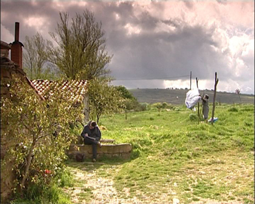 El cielo gira es un pueblo, Aldealseñor, de los páramos altos de Soria, en el que quedan 14 habitantes. Son una última generación, tras mil años de historia ininterrumpida. Su existencia se extinguirá sin estrépito y sin más testigos. Pero la realizadora intenta recuperar una imagen del mundo, de su infancia, en él.