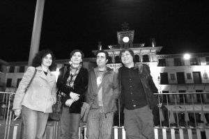 De izquierda a derecha: Mercedes Álvarez, Ana Pérez, Jesús Ponce y Juan Cruz, en el interior del quiosco de la plaza de los Fueros de Tudela.